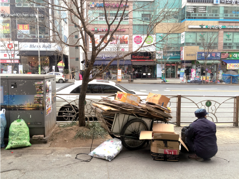 그러나 공포의 시간은 다시 찾아왔다. 망태 할아버지의 후예가 다시 등장한 것은 언제부터인지 모르겠다. 분명한 것은, 그 수가 점점 늘어나고 있으며 연령대도 다양해진다는 점이다. 세력 확장세가 무척 급격하다. 망태 대신에 리어카에서 손수레까지 도구도 점점 더 다양해진다. 최근에는 유모차나 대형할인매장에서 볼 수 있는 카트도 등장했다. 간혹 대형 트럭을 이용하는 사람도 있지만 망태 할아버지 후예 범주에 넣기에는 모호한 부분이 좀 있다. 움직이는 시간대와 동선 등이 겹치지 않도록 일종의 조율 시스템도 작동하는 듯하다.